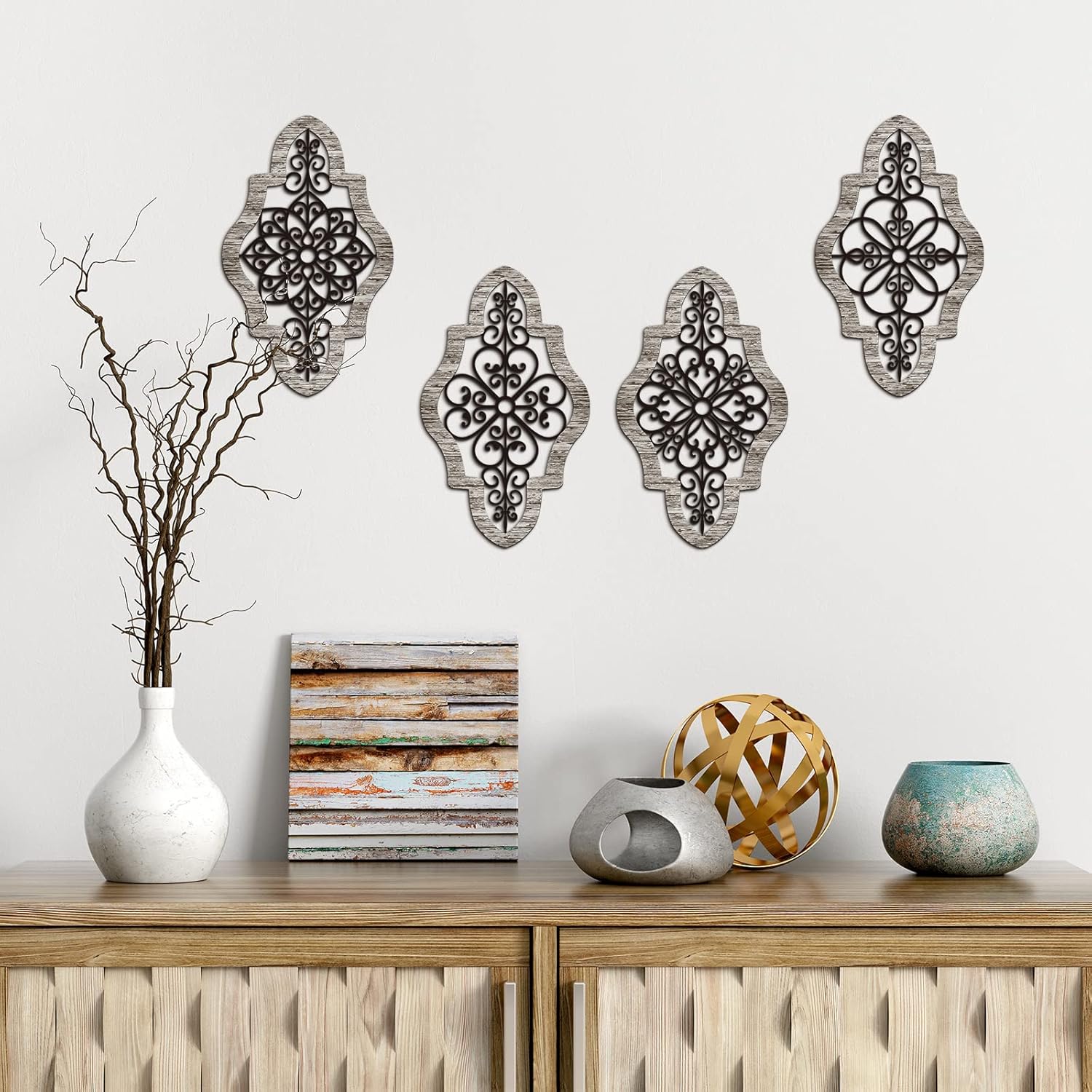 You Will Receive: you will receive 4 pieces of antique wall decorations, our wood wall art using vivid window flower pattern, 4 designs that will give your house a retro look
