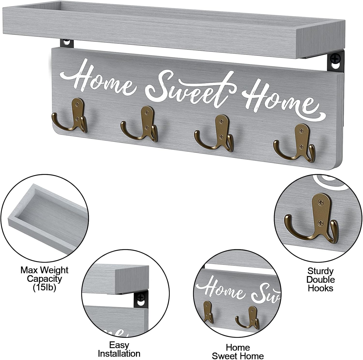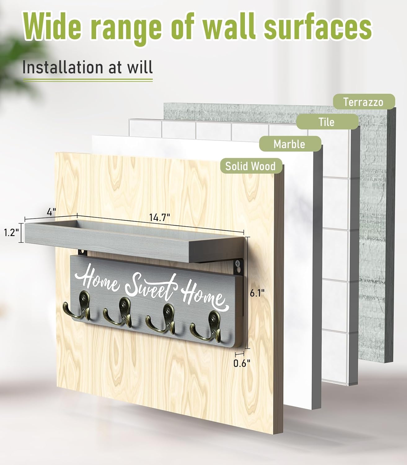 【Rustic Charm & Homely Atmosphere】The wooden design transitions seamlessly with your existing furniture, adding a touch of rustic elegance to narrow hallways. The “Home Sweet Home” of mail and key holder organizer for wall inscription fosters a warm, inviting family ambiance