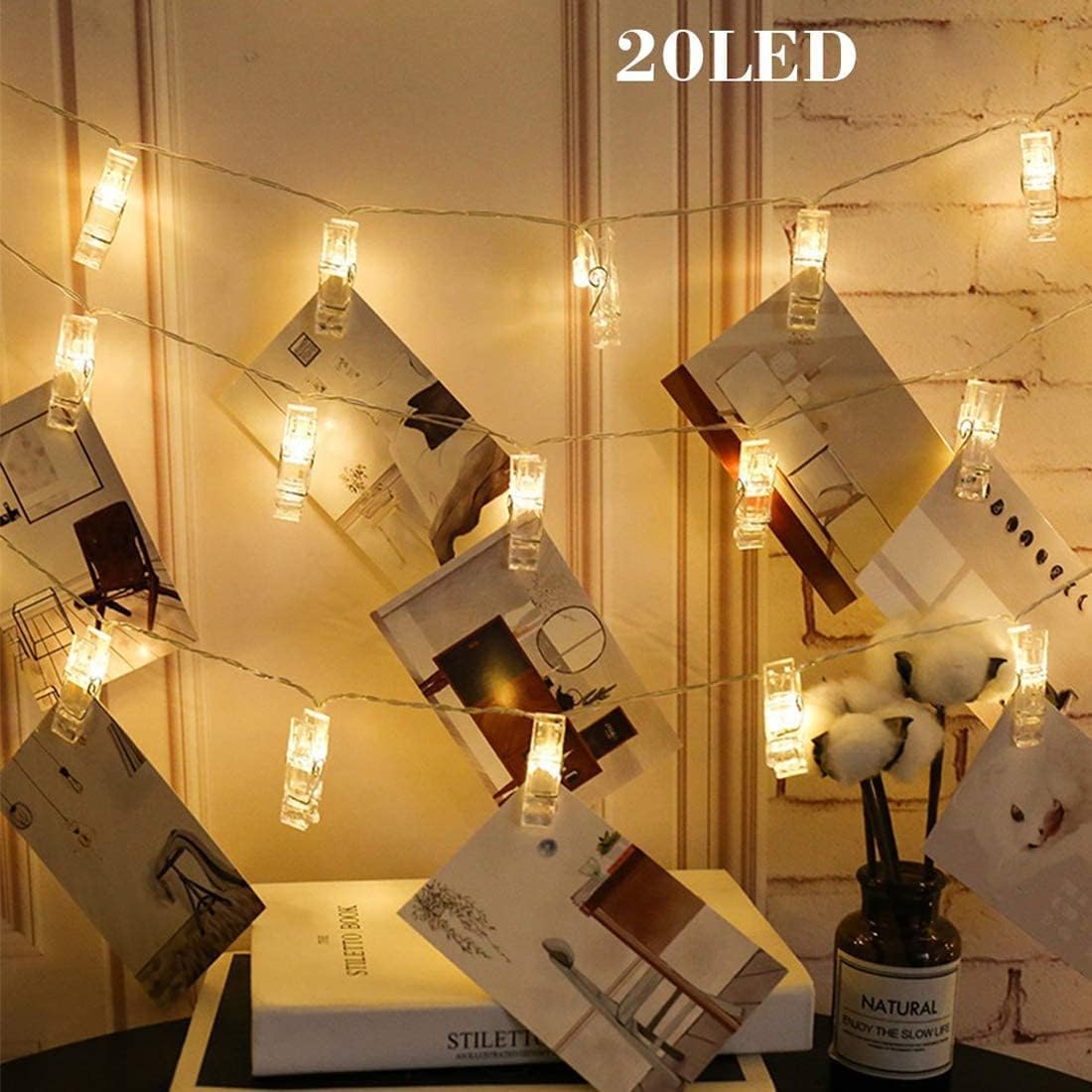 Dopheuor LED Photo Clip Copper String Lights Starry Fairy Warm White Lights Battery Powered for Hang Pictures Cards Bedroom Wall Decorations Christmas Patio Halloween Thanksgiving Wedding Party Décor