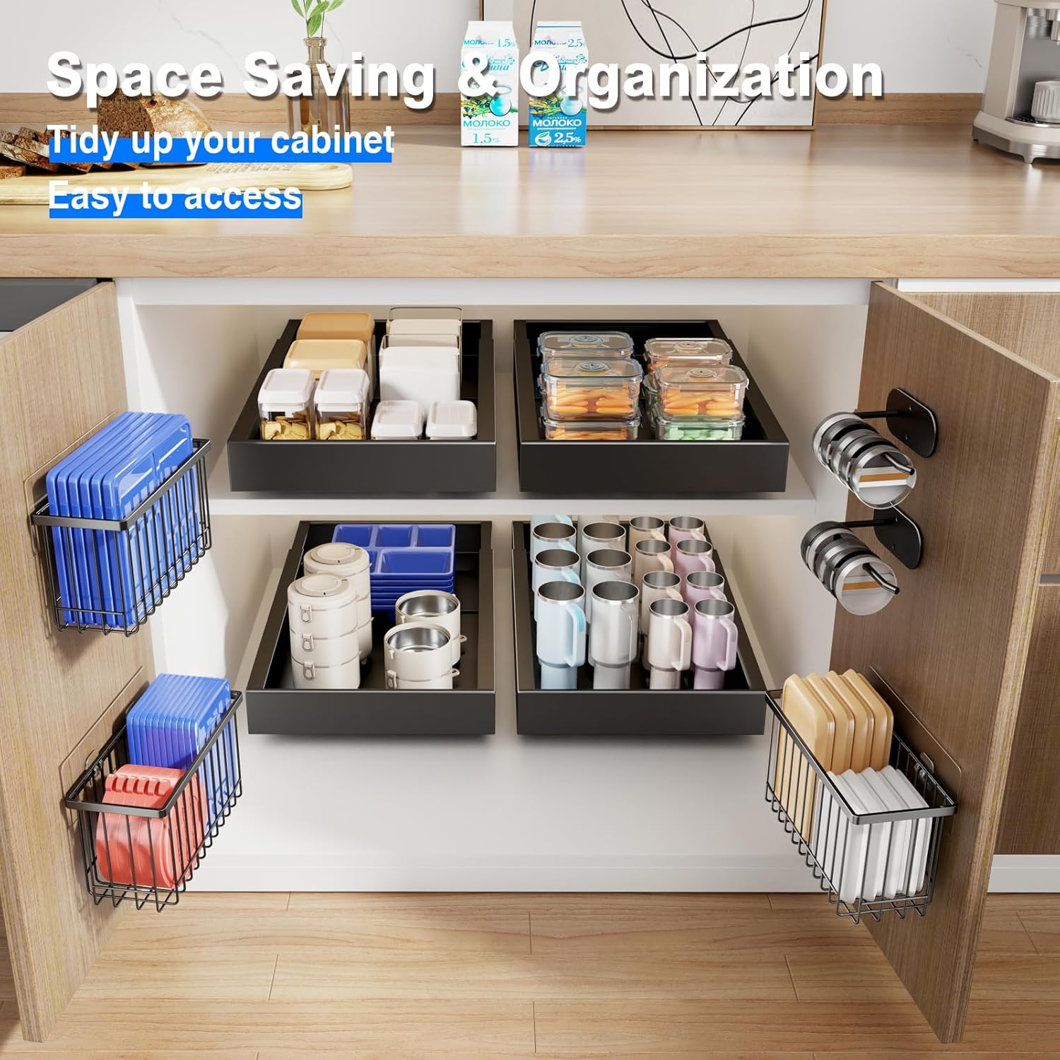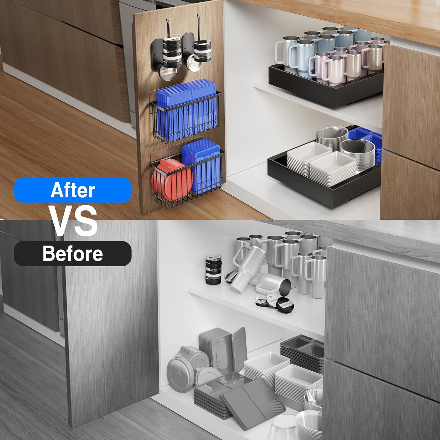 ใ๐๐ฉ๐๐๐ ๐๐๐ฏ๐ข๐ง๐ & ๐๐ฅ๐ข๐ฆ๐ข๐ง๐๐ญ๐ ๐๐ฅ๐ฎ๐ญ๐ญ๐๐ซใThe cabinet organizer storage contains 2 baskets and 2 lid holders to provide an extra storage organizer for slim space, neatly and orderly organize and store your food container lids and tumbler lids, easy to access, no longer time-consuming and laborious to find scattered and messy lids, Make the kitchen cleaner and less cluttered.