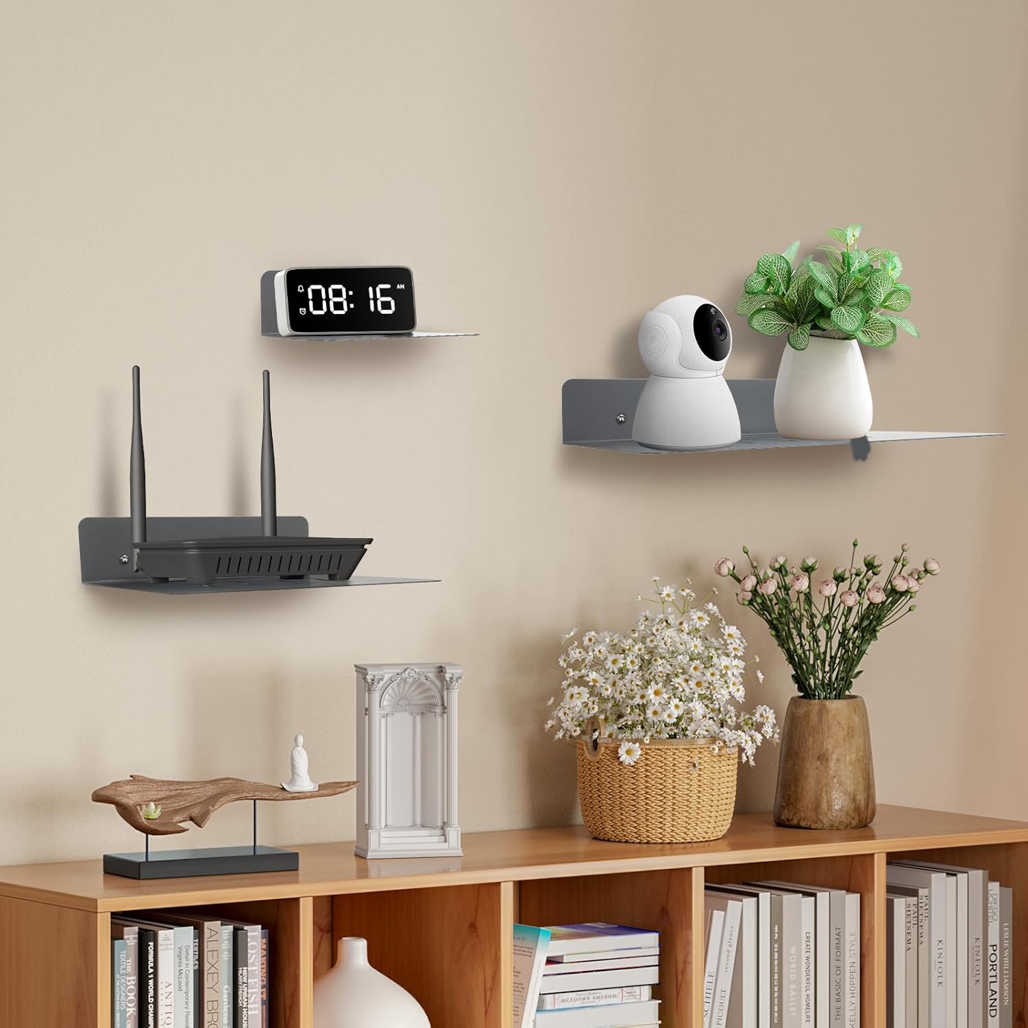 Stable and Durable: The floating shelves wall shelf wall mount shelfis made of crafted steel,strongs and durable. The smooth black surface is anodized and has the characteristics of anti-oxidation, no rust and no fading.