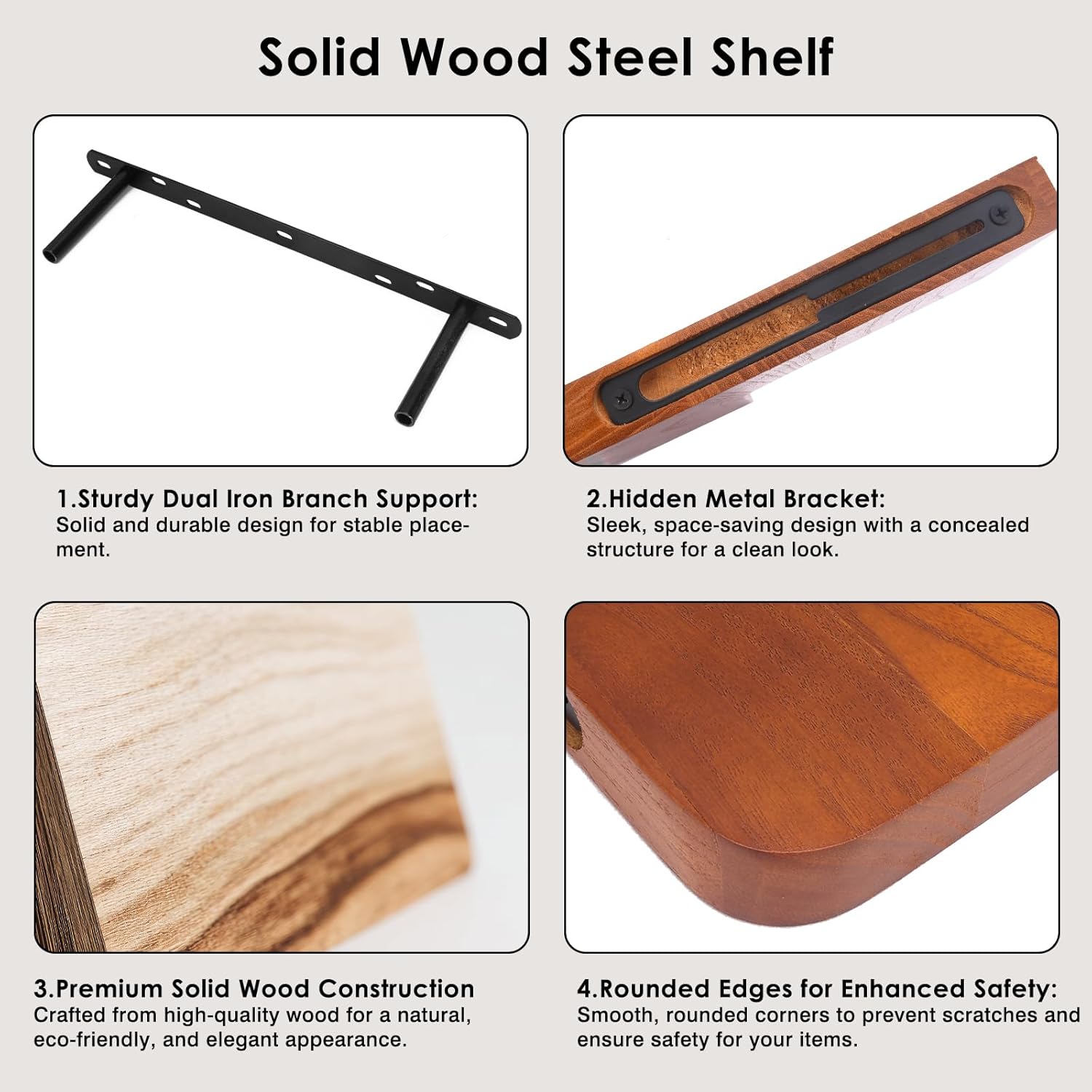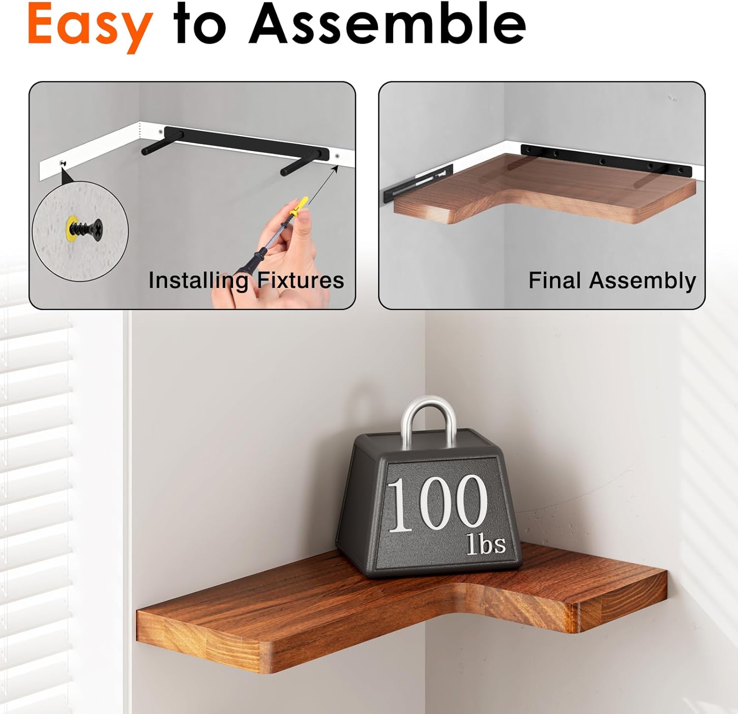 Installation: The shelf comes with pre-drilled holes and clear instructions for easy installation on wood, plaster, or brick walls. It includes a robust concealed metal bracket for stability and a sleek floating appearance, ensuring modern aesthetics.