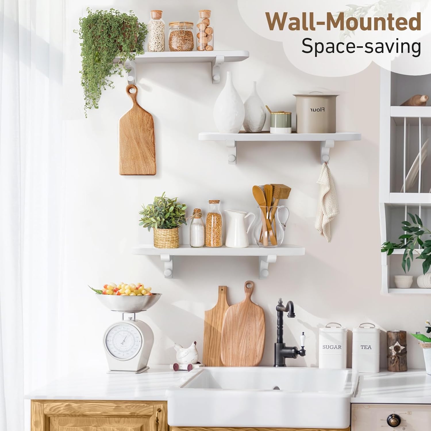 Space-Saving Storage: Our upgraded shelves feature deeper and thicker design, providing ample storage space (15.7″W x 6″D x 0.6″H) while taking up zero floor space. Perfect for small spaces, they reduce clutter and beautifully display decor, books, plants, or kitchen essentials.