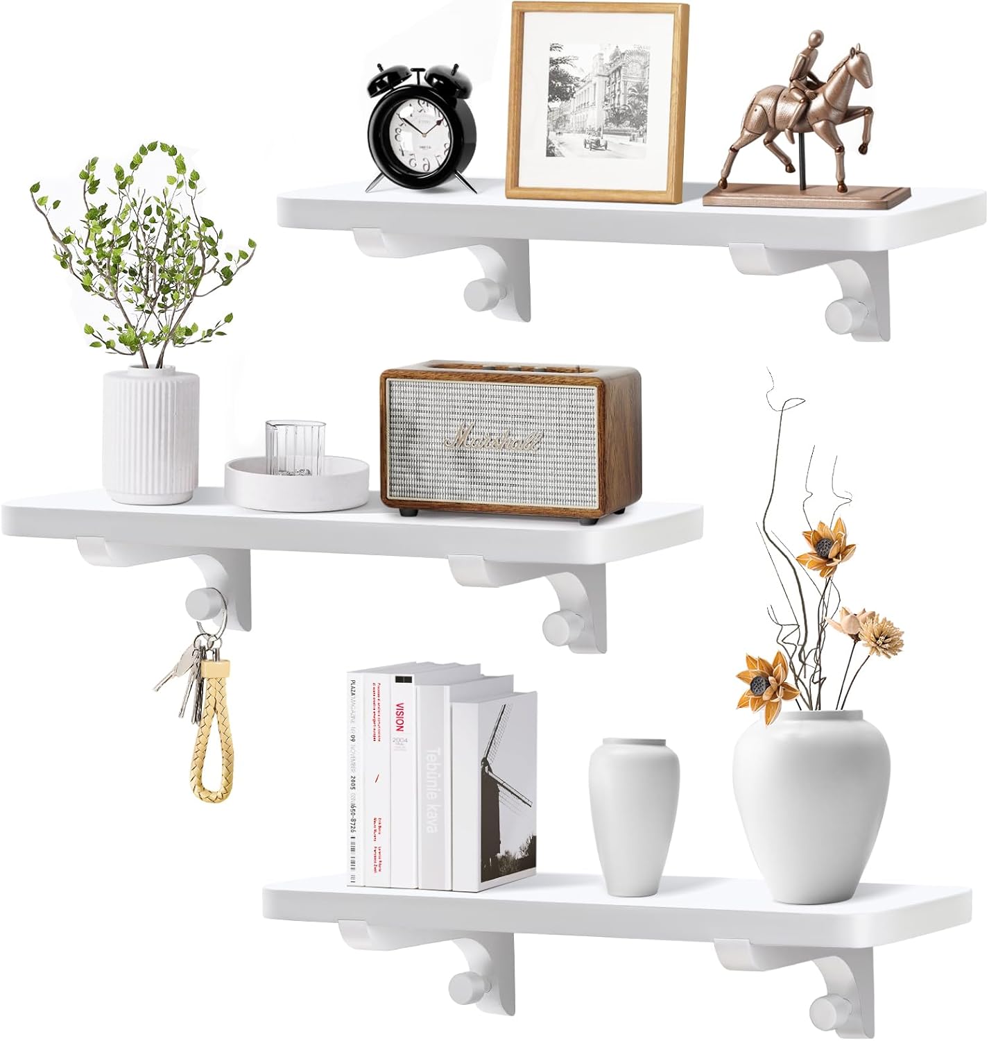 Minimalist Style: Choose from realistic wood grain, retro walnut or clean white finishes. Our floating shelves blend rustic charm with modern simplicity, seamlessly integrating with any décor.