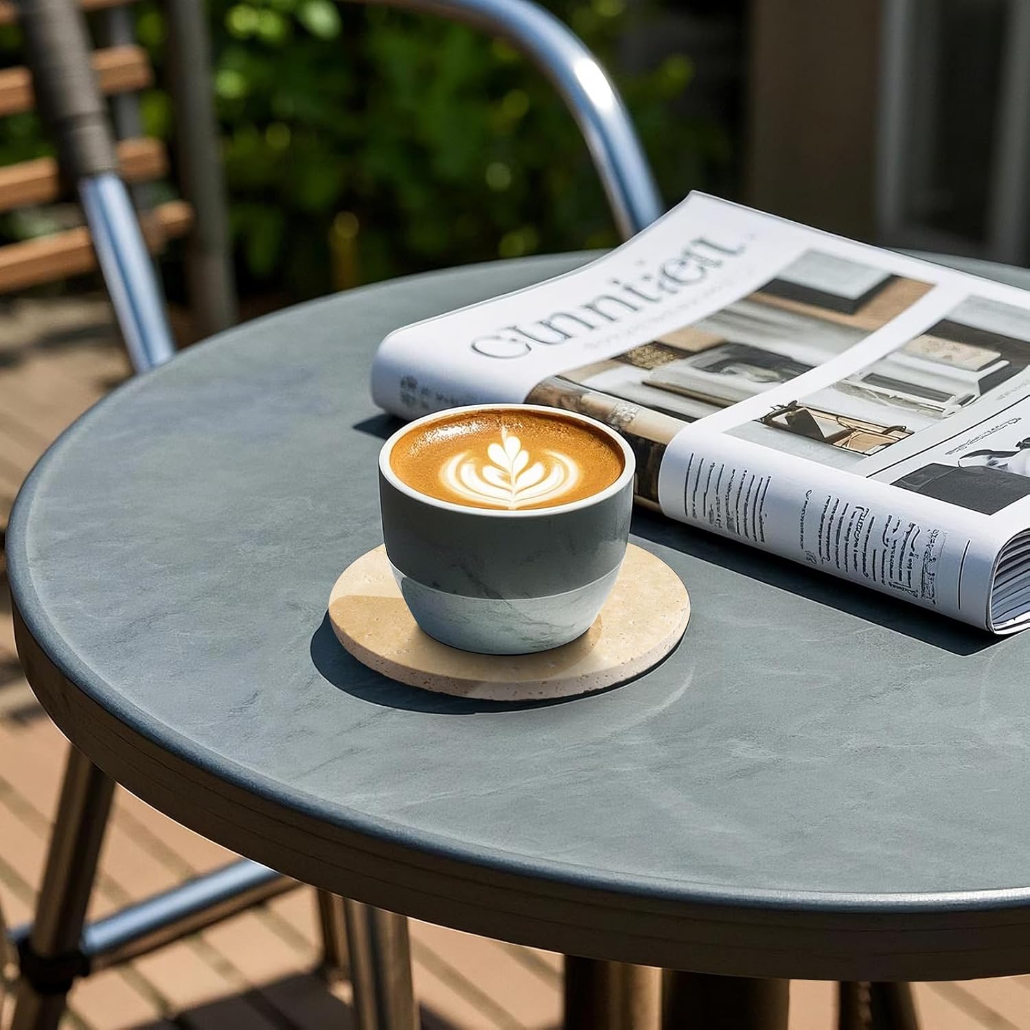 【Dual Protection: Porous Travertine with Velvet Backing】: With the ultra-soft velvet pad (not cork) backing, these sturdy coasters not only shield tables from scratches but also muffle noise and absorb impact when glasses are placed. The porous travertine absorbent coasters naturally soak up moisture from cold drinks, and the sturdy stone construction withstands hot drinks—keeping your furniture pristine
