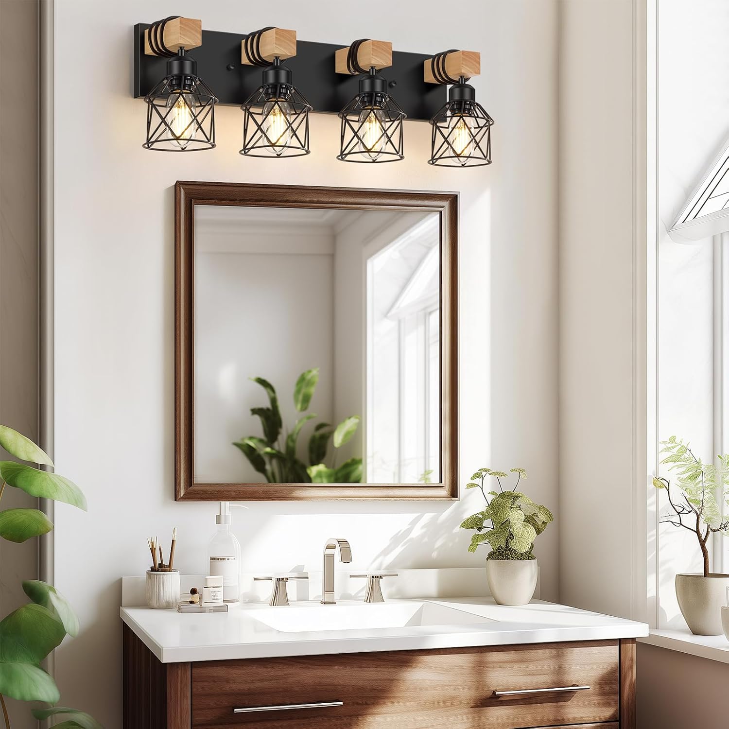 Of course, our 4 light bathroom vanity lights are crafted with high-quality solid wood and black metal cage, anti-rust and won’t fade.