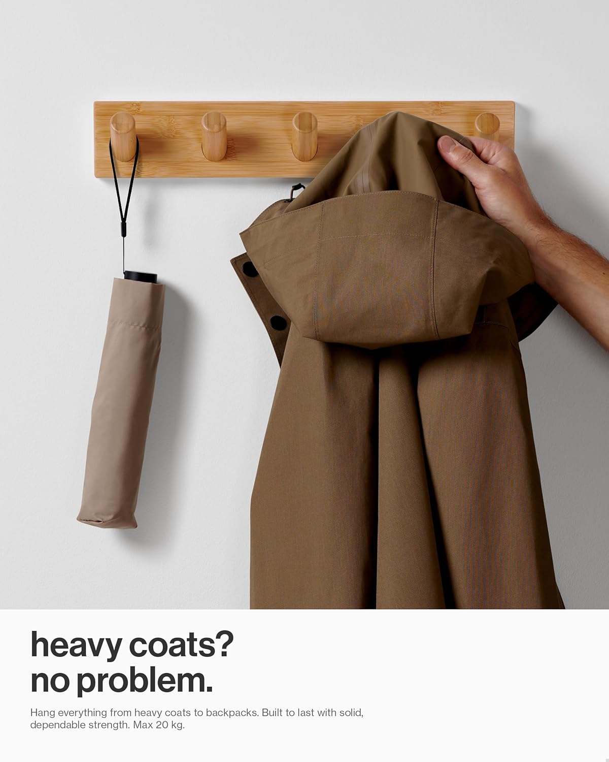 STURDY 1″ DIAMETER HOOKS: Up to 50% thicker than similar designs. Secure when hanging even the heaviest coats, jackets, towels and bags. Maximum recommended load 40 lbs.