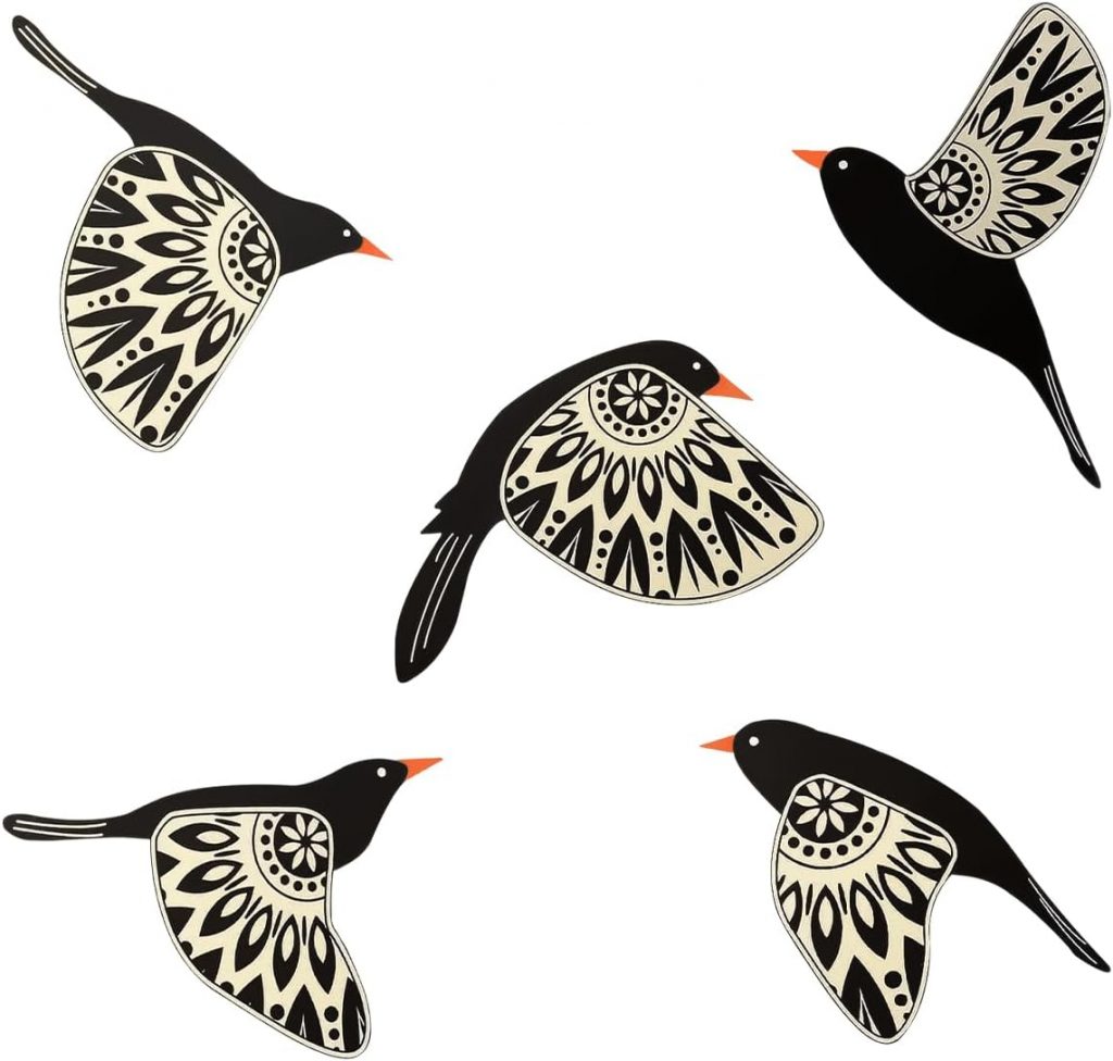 Handmade Wooden Flying Birds Wall Decor Set of 5 – Rustic Scandinavian Folk Art for Living Room, Bedroom, Kitchen, Office – Natural Lightweight Hanging Sculpture